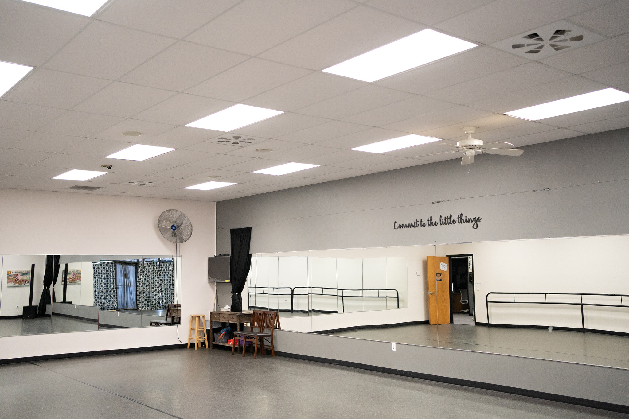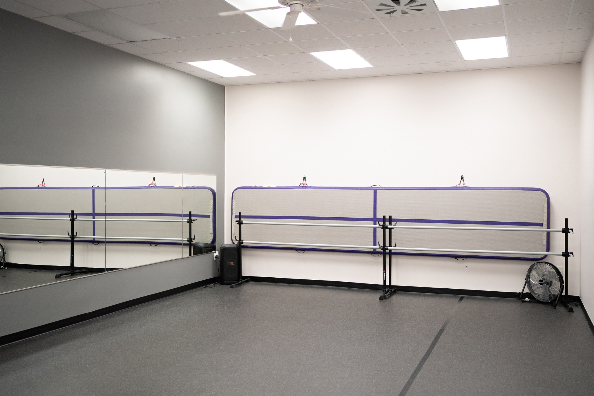 Our studio consists of three dance studios each equiped with professional dance floors, full-length mirrors, and barres — designed to support dancers of all ages and levels. Each room is built to provide the perfect balance of comfort, safety, and performance.